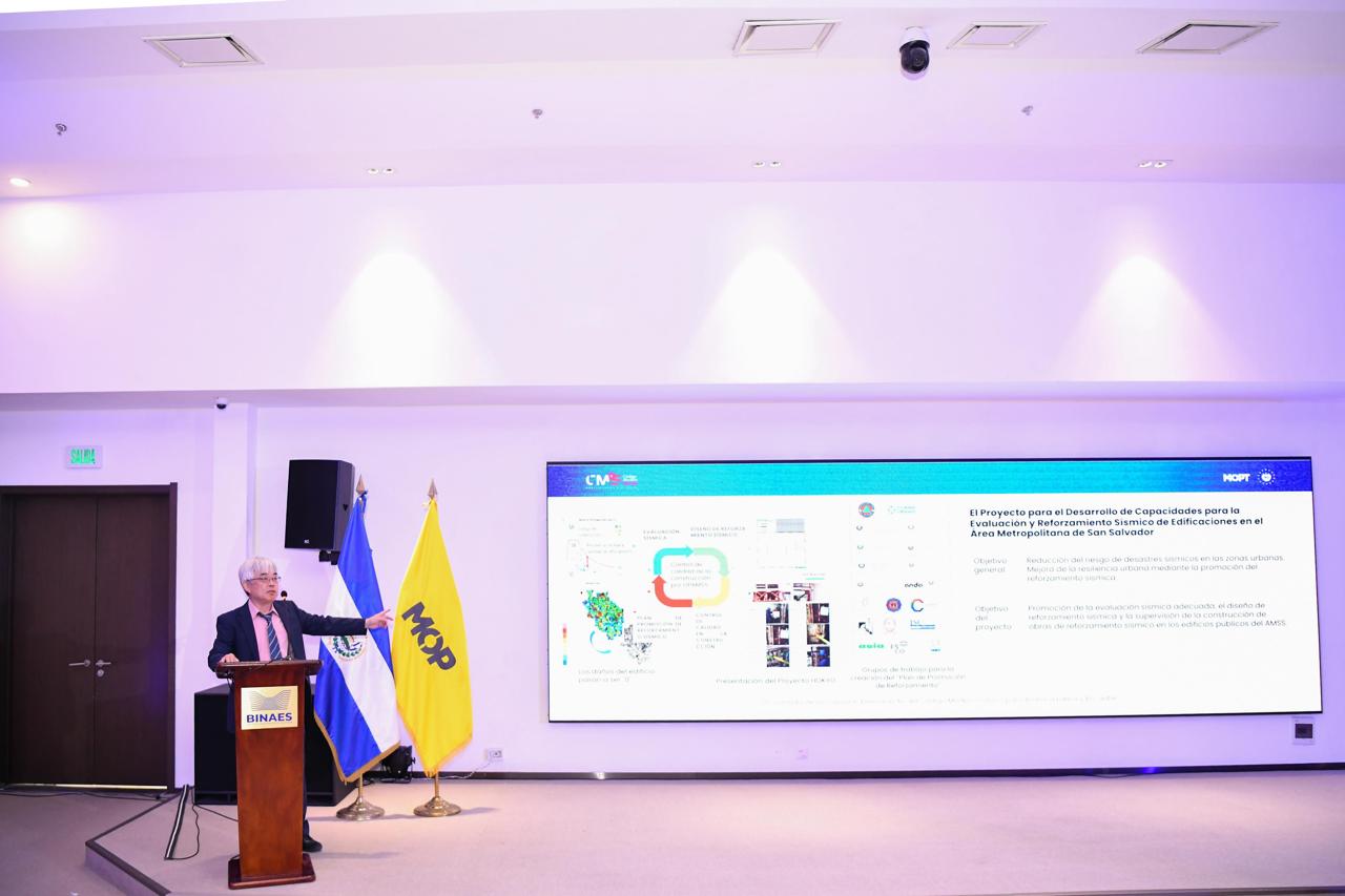 También se presentaron Miguel Cruz, con el tema “Sobrerresistencia en Diseño Según Normas”; Álvaro Poveda expuso sobre “Reglamentación Estructural Vivienda en Costa Rica”; Jun Matsuo, de JICA, con el tema “Aportes Proyecto HOKYO en Evaluación, Diseño y Supervisión de Reforzamiento Sísmico”; Gustavo Palazzo, con la charla “Evaluación Estructural y Reforzamiento de Edificaciones Escolares”; Luis Mixco presentó la charla “Plataforma de Resultados de Amenaza Sísmica de El Salvador”, y para terminar Brenda Sandoval se refirió al “Código Salvadoreño de Edificaciones”.