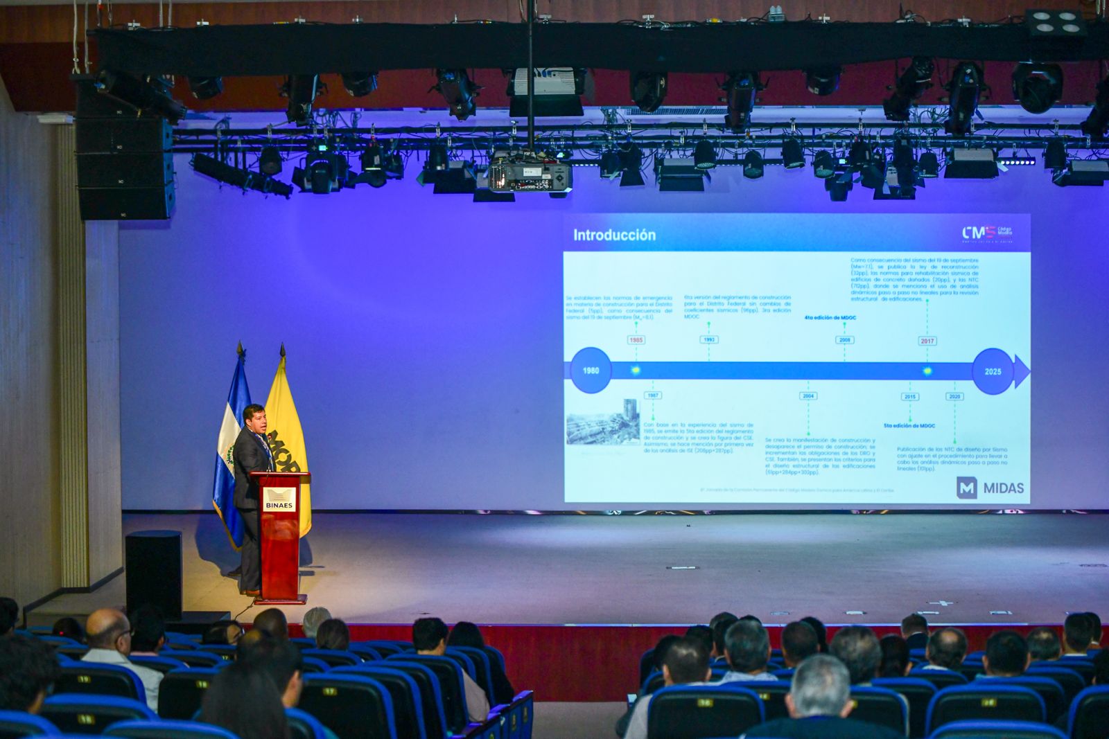 El último día de la 8ª Jornada del Código Modelo Sísmico para América Latina y el Caribe (CMS) estuvo dedicado a la memoria sísmica, la discusión técnica y los avances en normativas regionales. A 39 años del terremoto del 10 de octubre de 1986, la jornada comenzó con una sesión especial en conmemoración del evento, encabezada por Edwin Portillo, del comité organizador, junto a representantes de la academia y los gremios salvadoreños.